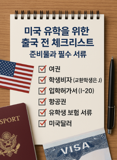 미국 유학을 떠나기 전에 반드시 준비해야 할 서류와 물품들이 많습니다. 유학 생활을 원활하게 시작하기 위해서는 출국 전 모든 준비물을 빠짐없이 체크하고 준비하는 것이 중요합니다. 아래의 체크리스트를 참고하여 유학 준비를 철저하게 마무리하세요.
